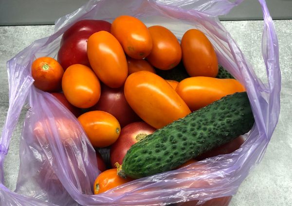 Приніс ножа. Відрізали і хліба, і ковбаси. Решту бабуся акуратно поклала в пакет до круп, макаронів і бананів.