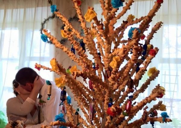 Батьки Олексія вийшли зустрічати молодих з хлібом-сіллю, за давнім звичаєм дали відкусити від короваю: хто більше відкусить, той і в родині верховодитиме.