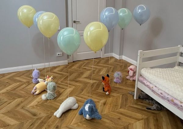 У свій день народження Ганнуся відкрила очі й подумала, що вона ще спить. Уся кімната була в яскравих кульках! А на сніданок був справжній торт із свічками! Вона їх задула й загадала бажання.