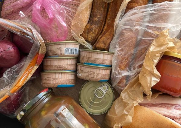 Вона саме викладала з великої полотняної торби продукти: пачку гречки, пакет молока, банку домашнього варення, загорнуту у фольгу запечену курку, пучок кропу.